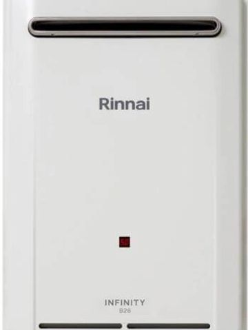 Supplied product is preset to 50 degrees and is installed in the same external position as like-identical units. Rinnai 26L units are the same size as such units with no additional valves. Connection of plumbing to existing pipes.